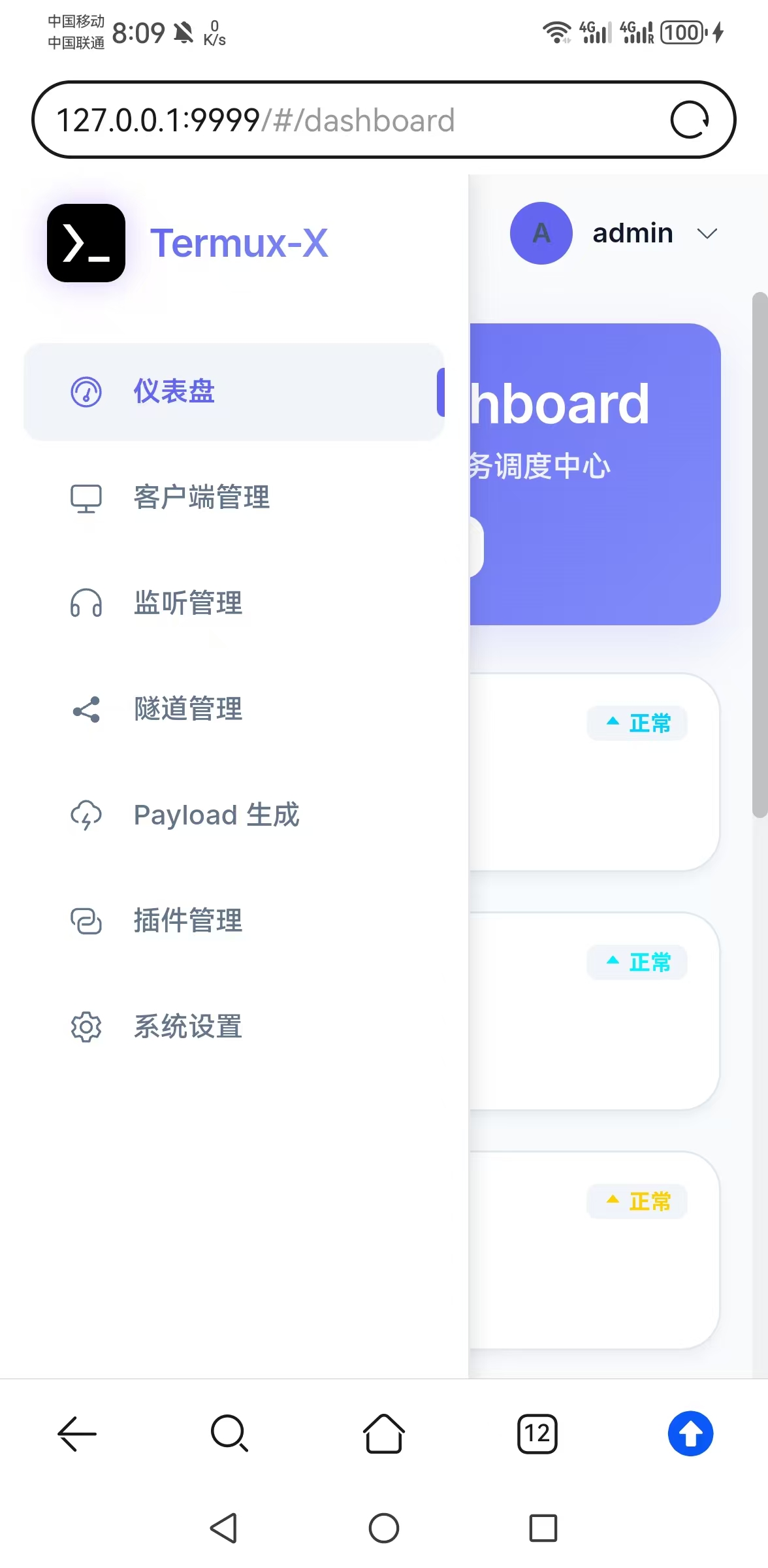 termux-x-c2项目。 - 一键启动:点击按钮即可自动启动服务并跳转浏览器。