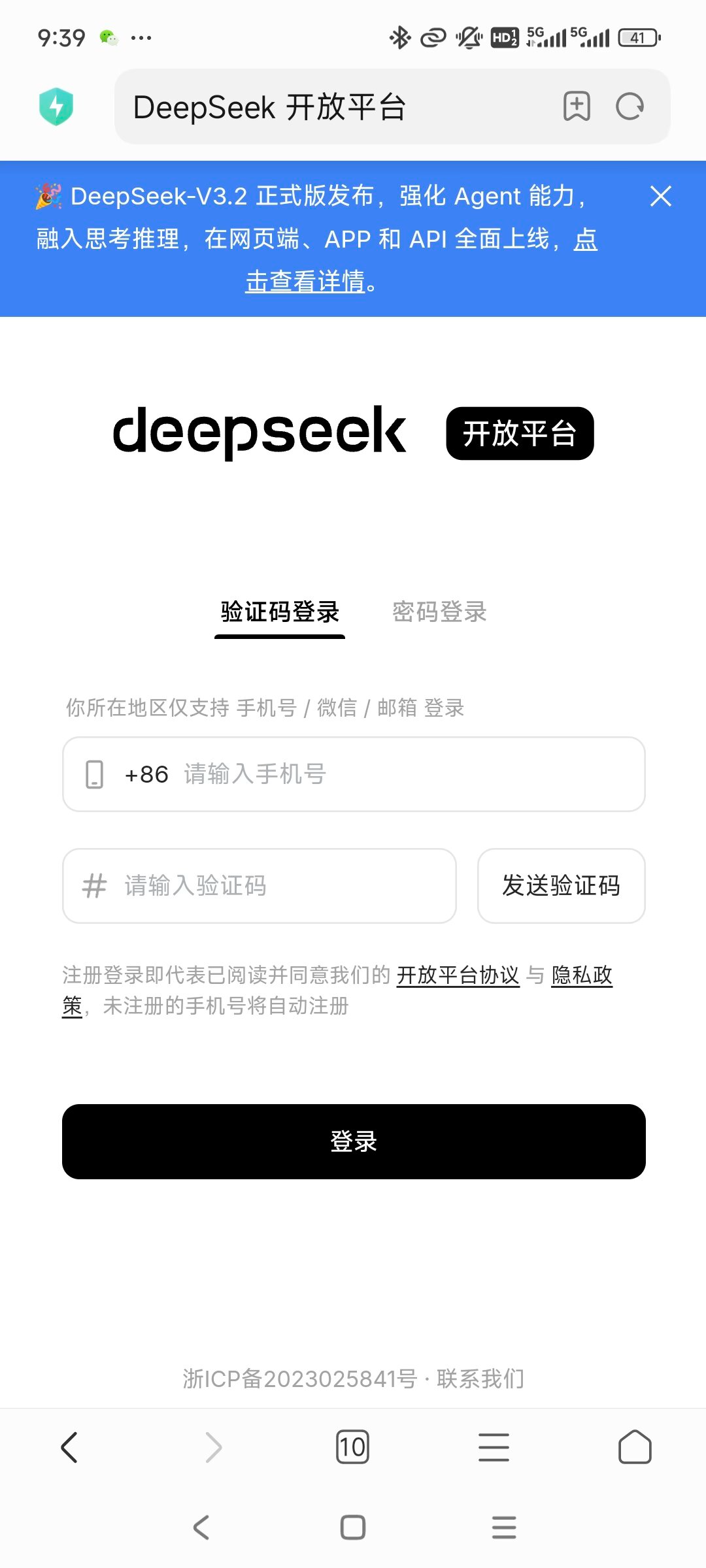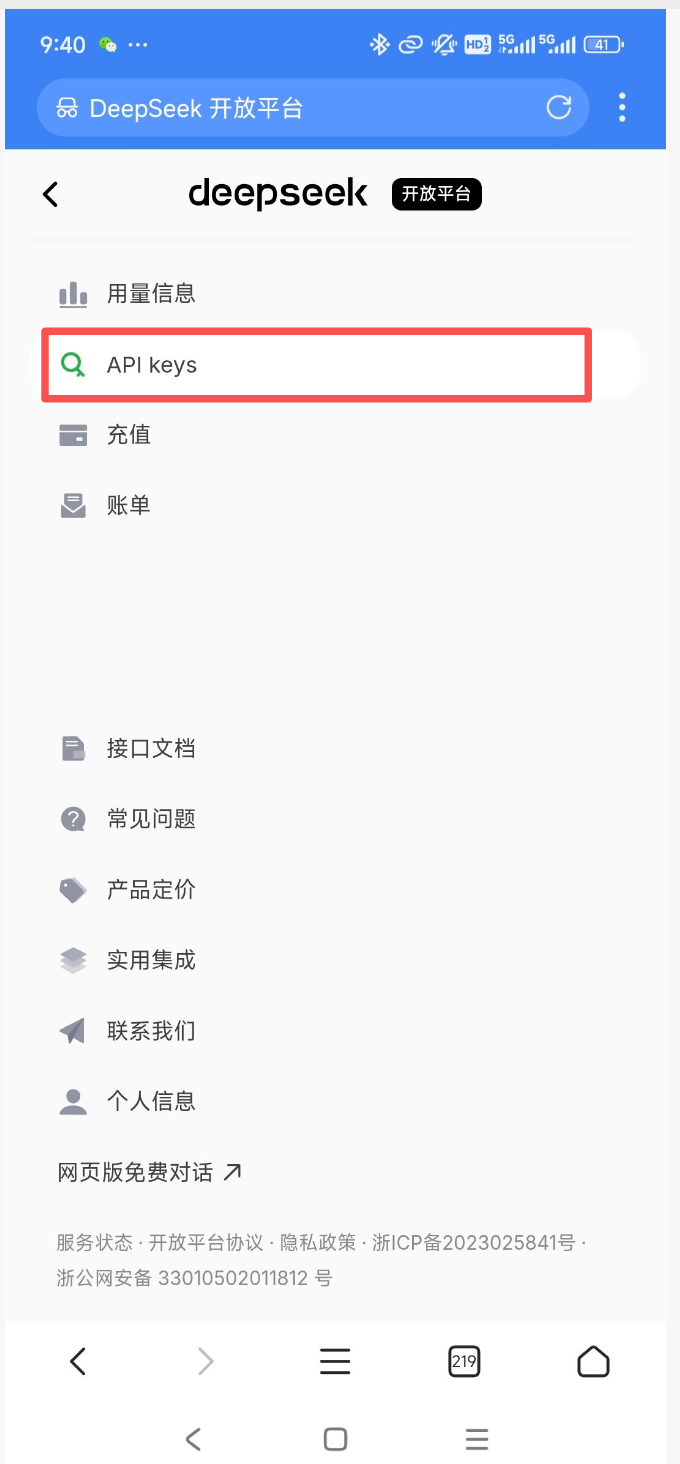 - 首先访问 DeepSeek 开放平台 并注册账号。